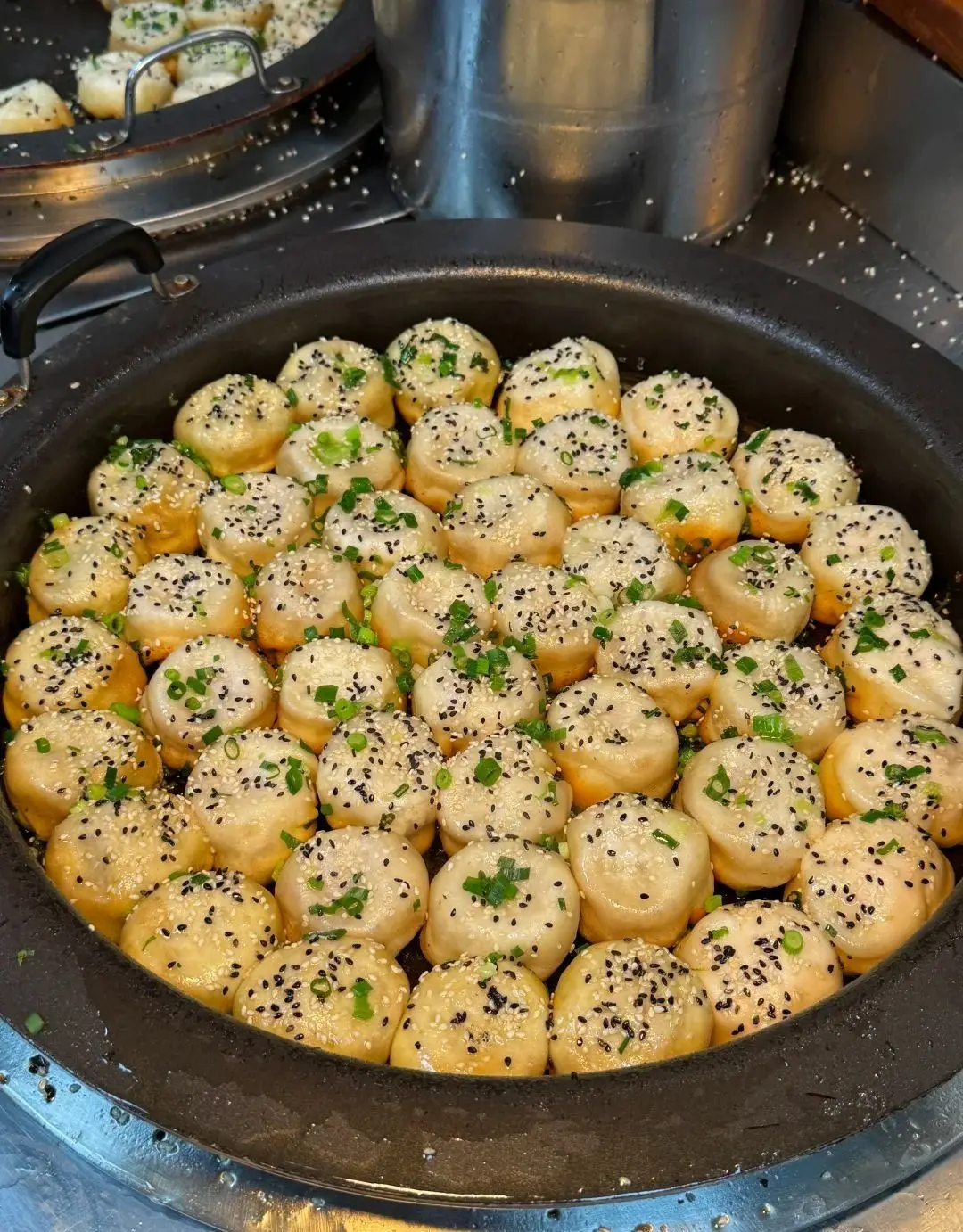 🍳 Shengjian 生煎包– crispy on the outside, juicy on the inside